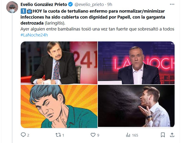 LOS LOCOS ADAMS: UNA FAMILIA MUY NORMAL 🎶 📺HOY la cuota de tertuliano enfermo para normalizar/minimizar infecciones ha sido cubierta con dignidad por Papell, con la garganta destrozada (laringitis). Ayer alguien entre bambalinas tosió una vez tan fuerte que sobresaltó a todo