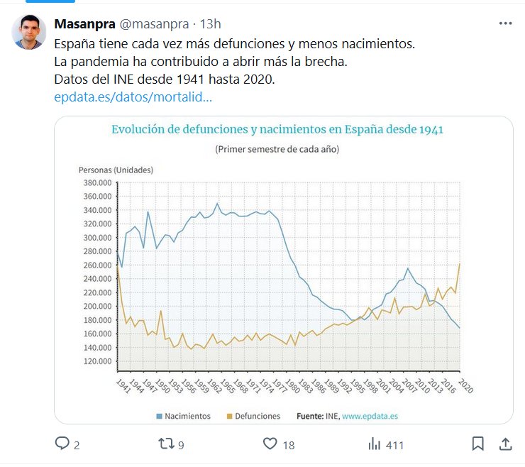 ESPAÑA EXANGÜE España tiene cada vez más defunciones y menos nacimientos. La pandemia ha contribuido a abrir más la brecha. Datos del INE desde 1941 hasta 2020 Posted on marzo 28, 2024 por coronado