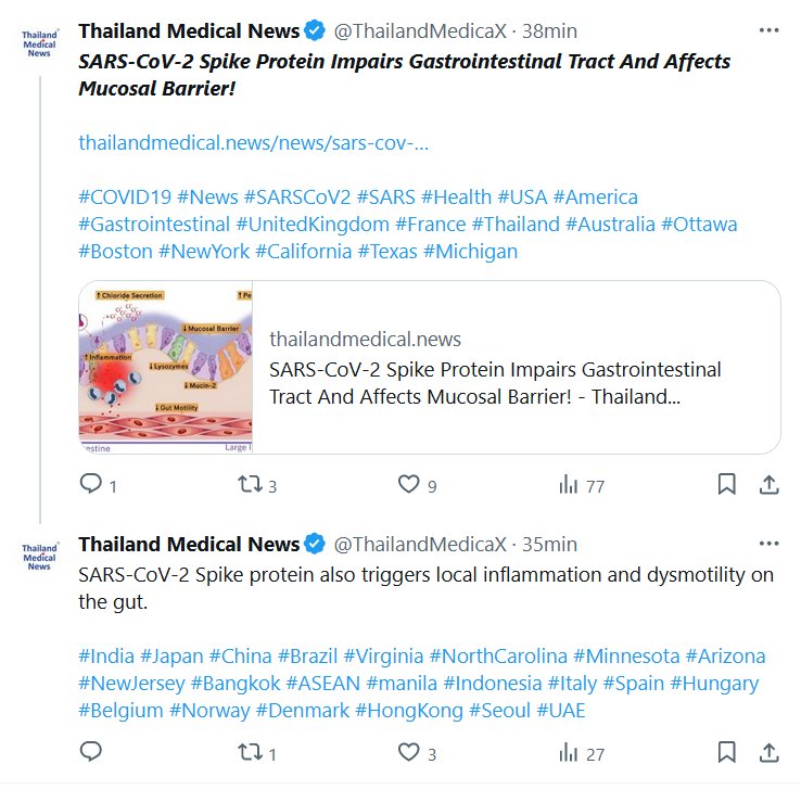 EN INGLÉS La proteína en espiga del SARS-CoV-2 deteriora el tracto gastrointestinal y afecta a la barrera DE LA mucosa INTESTINAL Posted on marzo 29, 2024 por coronado https://www.thailandmedical.news/news/sars-cov-2-spike-protein-impairs-gastrointestinal-tract-and-affects-mucosal-barrier