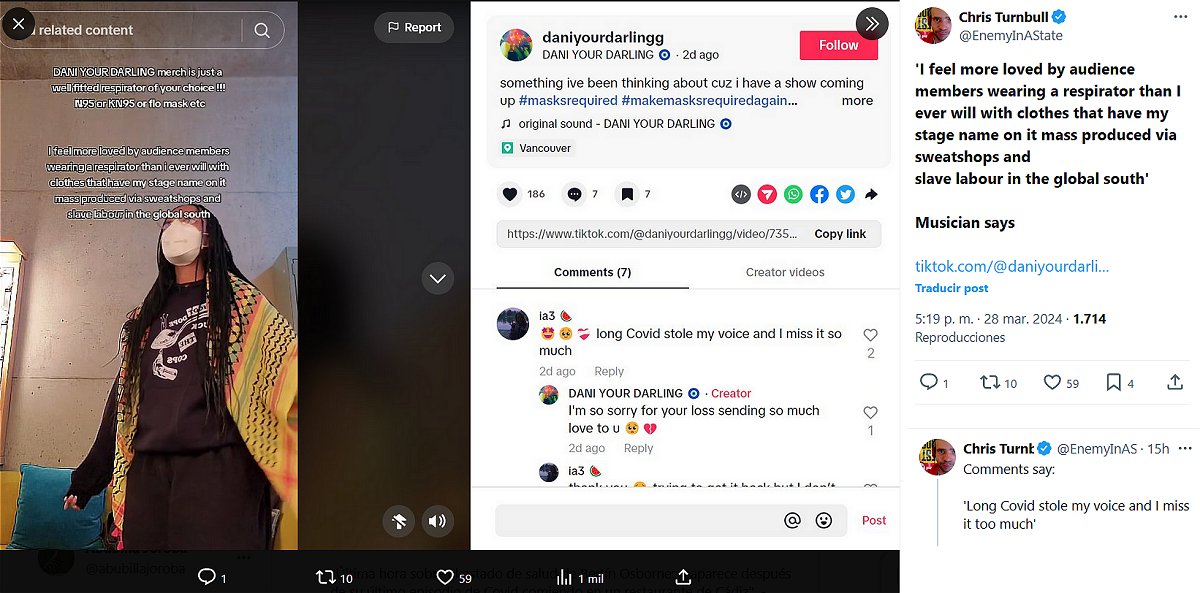 TESTIMONIOS (TESTIMONIOS) MÚSICOS ; «LONG COVID ROBÓ MI VOZ Y LA EXTRAÑO MUCHO» Posted on marzo 29, 2024 por coronado https://www.tiktok.com/@daniyourdarlingg/video/7350491693004655877