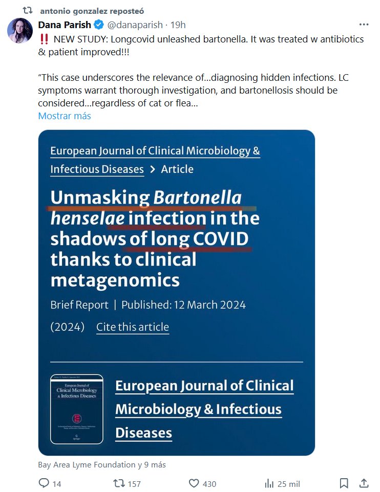EL HIV NOS HIZO CONOCER EL SARCOMA DE KAPOSI, EL COVID LA BARTONELLA! ‼️ NUEVO ESTUDIO: El largo Covid desató la bartonella. ¡¡¡Fue tratado con antibióticos y el paciente mejoró!!!