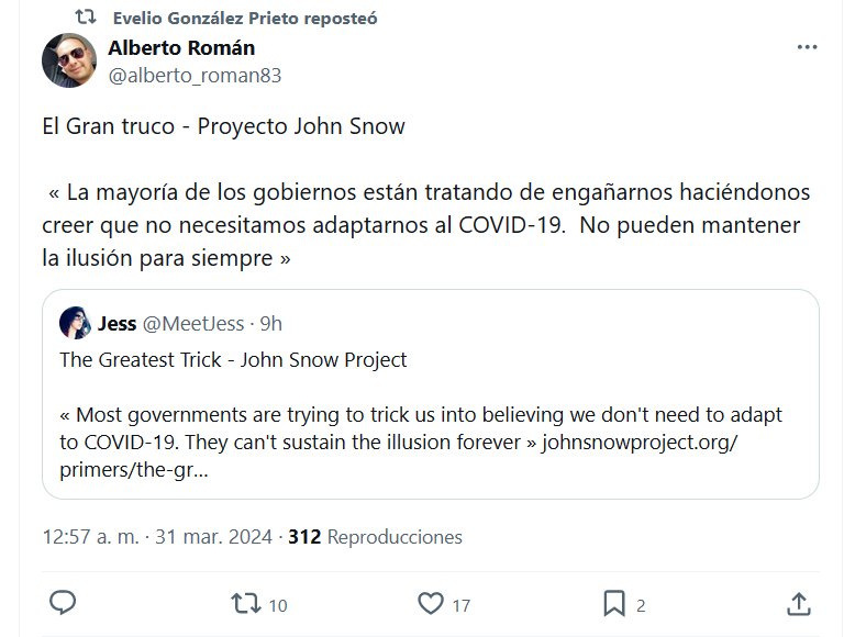 El Gran truco – Proyecto John Snow « La mayoría de los gobiernos están tratando de engañarnos haciéndonos creer que no necesitamos adaptarnos al COVID-19. No pueden mantener la ilusión para siempre »