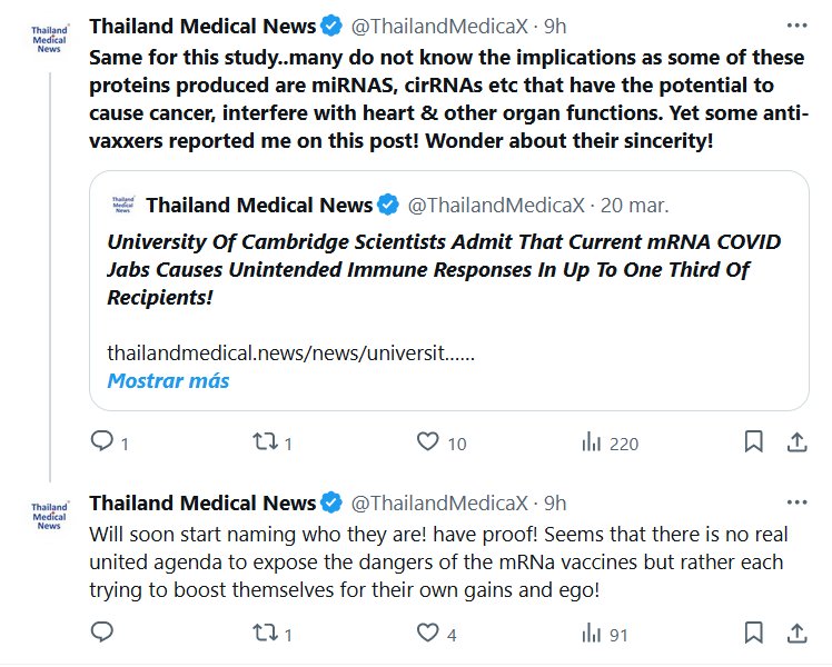 Noticias médicas de Tailandia @TailandiaMedicaX · Lo mismo ocurre con este estudio... muchos no conocen las implicaciones, ya que algunas de estas proteínas producidas son miRNAS, cirRNA, etc., que tienen el potencial de causar cáncer e interferir con las funciones del corazón y otros órganos. ¡Sin embargo, algunos anti-vacunas me denunciaron en esta publicación! ¡Me pregunto por su sinceridad!