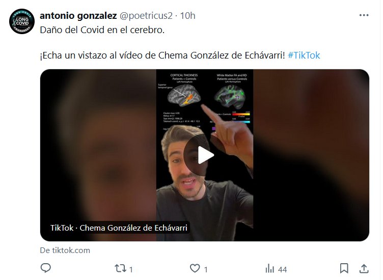 Daño del Covid en el cerebro. ¡Echa un vistazo al vídeo de Chema González de Echávarri! #TikTok Posted on abril 13, 2024 por coronado https://www.tiktok.com/@neuroprevencion/video/7357030014224846113?_t=8lTrwDmBA3s&_r=1