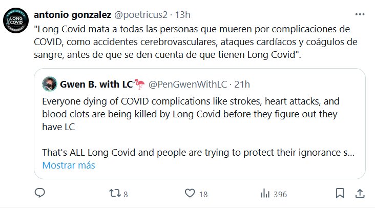«Long Covid mata a todas las personas que mueren por complicaciones de COVID, como accidentes cerebrovasculares, ataques cardíacos y coágulos de sangre, antes de que se den cuenta de que tienen Long Covid».