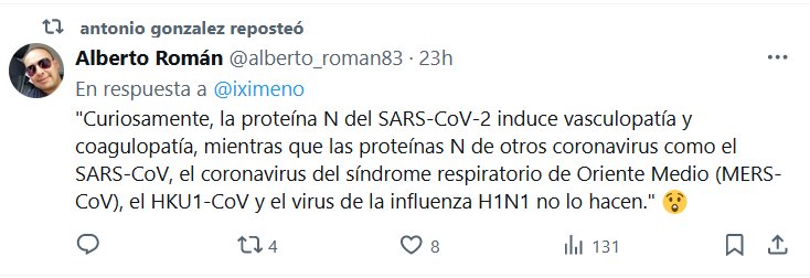 «Curiosamente, la proteína N del SARS-CoV-2 induce vasculopatía y coagulopatía, mientras que las proteínas N de otros coronavirus como el SARS-CoV, el coronavirus del síndrome respiratorio de Oriente Medio (MERS-CoV), el HKU1-CoV y el virus de la influenza H1N1 no lo hacen.» 😲
