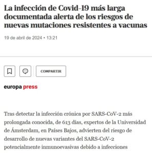 IRRESPONSABILIDAD HISTÓRICA La infección de Covid-19 más larga documentada alerta de los riesgos de nuevas mutaciones resistentes a vacunas Posted on abril 20, 2024 por coronado https://www.lanacion.com.ar/agencias/la-infeccion-de-covid-19-mas-larga-documentada-alerta-de-los-riesgos-de-nuevas-mutaciones-nid19042024/