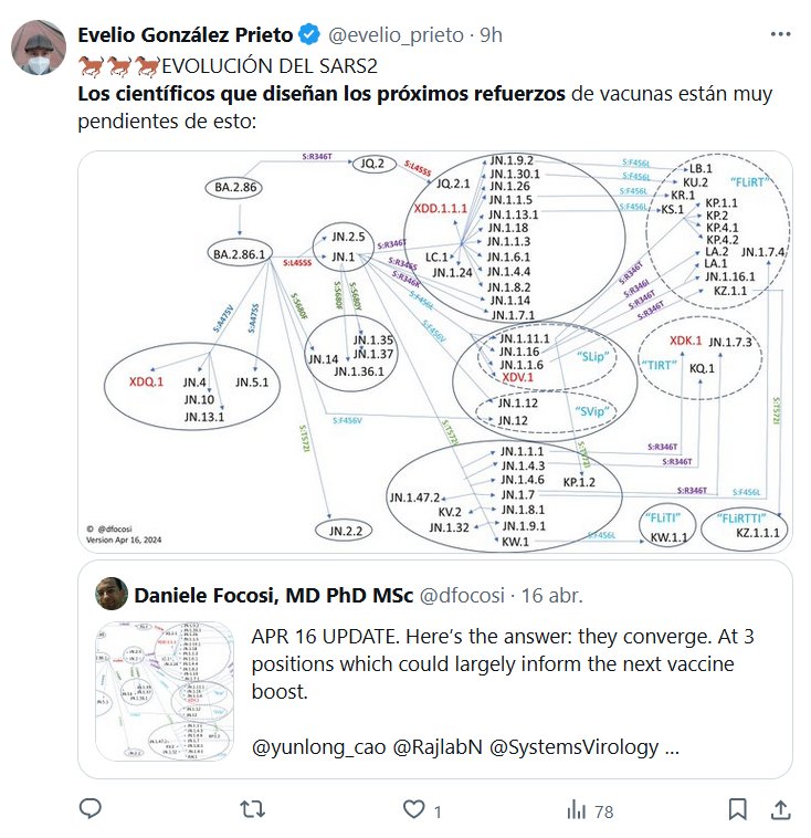 NO HAY MÁS, DICEN, PERO LA VACUNA TE LA VAN A ENCHUFAR $$$ 🐎🐎🐎EVOLUCIÓN DEL SARS2 Los científicos que diseñan los próximos refuerzos de vacunas están muy pendientes de esto: Posted on abril 20, 2024 por coronado https://twitter.com/dfocosi/status/1780183036853690596