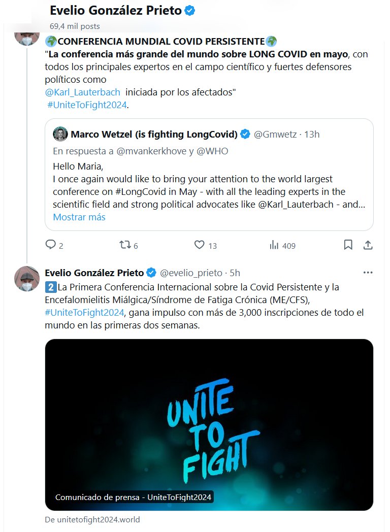 🌍CONFERENCIA MUNDIAL COVID PERSISTENTE🌍 «La conferencia más grande del mundo sobre LONG COVID en mayo, con todos los principales expertos en el campo científico y fuertes defensores políticos como @Karl_Lauterbach iniciada por los afectados» #UniteToFight2024.