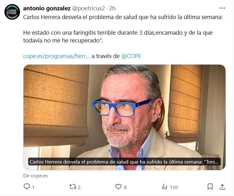 ENFERMEDADES MISTERIOSAS EN ERA COVID Carlos Herrera desvela el problema de salud que ha sufrido la última semana: He estado con una faringitis terrible durante 3 días,encamado y de la que todavía no me he recuperado».