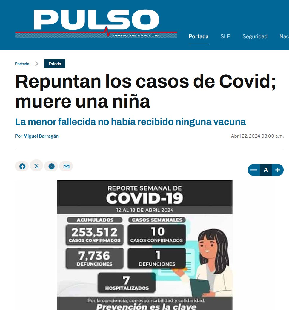 Repuntan los casos de Covid; muere una niña Posted on abril 22, 2024 por coronado https://pulsoslp.com.mx/estado/repuntan-los-casos-de-covid-muere-una-nina/1782290