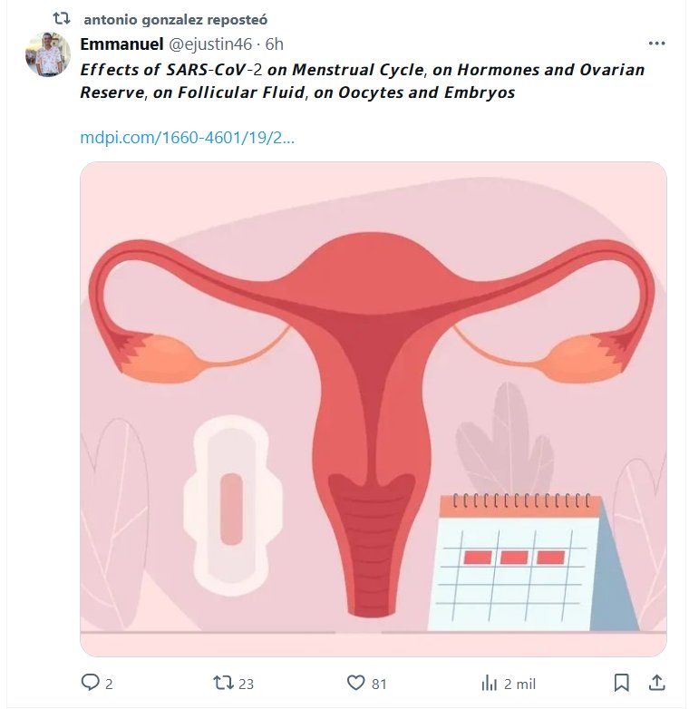 EN INGLÉS Los efectos de la infección por SARS-CoV-2 sobre la fertilidad femenina: una revisión de la literatura Posted on abril 24, 2024 por coronado https://www.mdpi.com/1660-4601/19/2/984