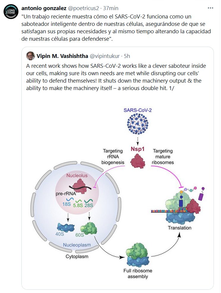 «Un trabajo reciente muestra cómo el SARS-CoV-2 funciona como un saboteador inteligente dentro de nuestras células, asegurándose de que se satisfagan sus propias necesidades y al mismo tiempo alterando la capacidad de nuestras células para defenderse».