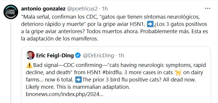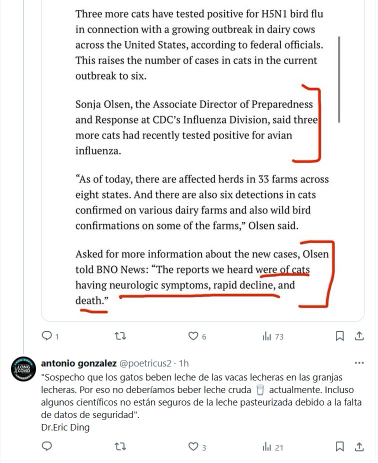 PARAPANDEMIA-SS «Mala señal, confirman los CDC, “gatos que tienen síntomas neurológicos, deterioro rápido y muerte” por la gripe aviar H5N1. ➡️¿Los 3 gatos positivos a la gripe aviar anteriores? Todos muertos ahora. Probablemente más. Esta es la adaptación de los mamíferos.