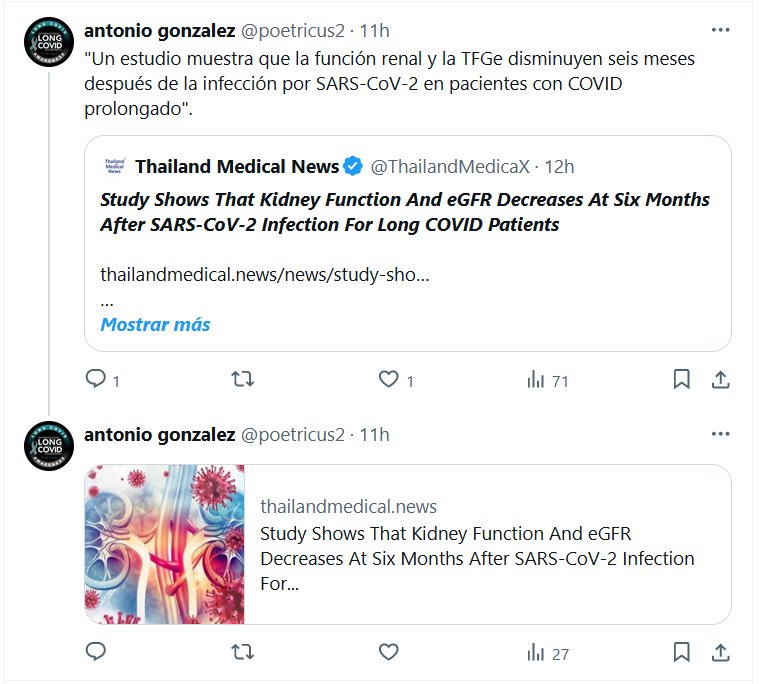 «Un estudio muestra que la función renal y la TFGe disminuyen seis meses después de la infección por SARS-CoV-2 en pacientes con COVID prolongado». Posted on abril 26, 2024 por coronado https://www.thailandmedical.news/news/study-shows-that-kidney-function-and-egfr-decreases-at-six-months-after-sars-cov-2-infection-for-long-covid-patients