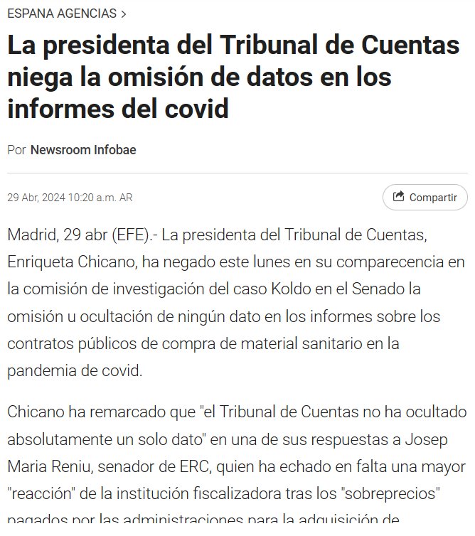 INFODEMIA MUNDIAL: OCULTACIÓN DE DATOS COVID La presidenta del Tribunal de Cuentas niega la omisión de datos en los informes del covid Posted on abril 29, 2024 por coronado https://www.infobae.com/espana/agencias/2024/04/29/la-presidenta-del-tribunal-de-cuentas-niega-la-omision-de-datos-en-los-informes-del-covid/