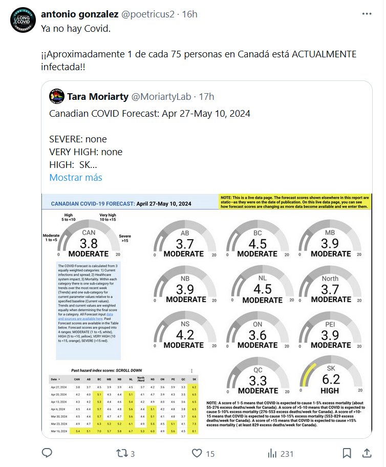 Ya no hay Covid. (SARCASMO) ¡¡Aproximadamente 1 de cada 75 personas en Canadá está ACTUALMENTE infectada!! Posted on abril 29, 2024 por coronado