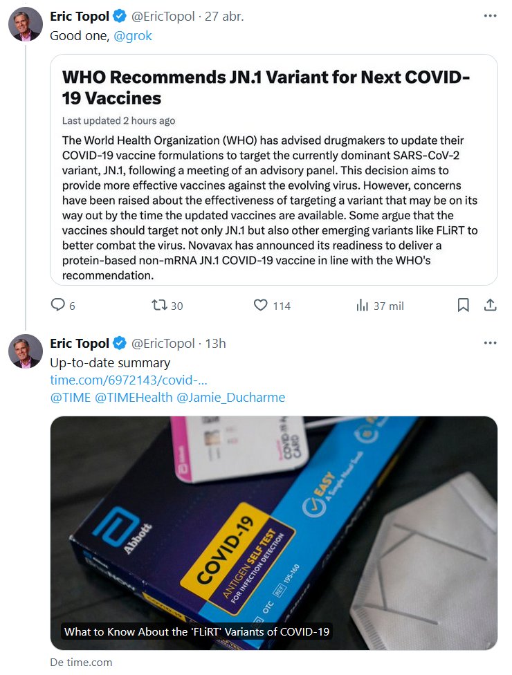 EN INGLÉS Eric Topol @EricTopol · 26 abr. La variante FLiRT KP.2 comienza a tomar control de los casos de Covid en EE. UU. y ahora representa 1 de cada 4 casos Posted on abril 30, 2024 por coronado https://covid.cdc.gov/covid-data-tracker/#variant-proportions
