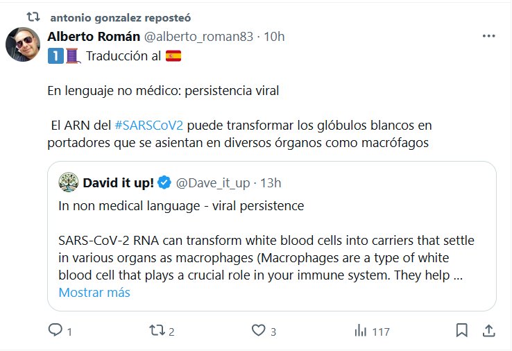 En lenguaje no médico: persistencia viral El ARN del SARS-CoV-2 puede transformar los glóbulos blancos en portadores que se asientan en varios órganos como macrófagos (los macrófagos son un tipo de glóbulos blancos que desempeñan un papel crucial en el sistema inmunológico. Ayudan a defender el cuerpo al engullir y digerir sustancias extrañas). , como bacterias y virus, así como células muertas o dañadas). Los macrófagos son importantes no solo para atacar a los patógenos sino también para ayudar a iniciar procesos de curación en el cuerpo al eliminar los desechos y promover la reparación de tejidos) y potencialmente reactivarlos. Este comportamiento se observa en otras infecciones de larga duración. Por ejemplo, la persistencia del ARN del Ébola podría ayudar a explicar los efectos a largo plazo del COVID-19. Los conocimientos de larga data muestran que el ARN viral puede persistir durante períodos prolongados, especialmente en partes del cuerpo como el cerebro, los ojos y los testículos, que tienen relaciones especiales con el sistema inmunológico. Estas áreas están algo protegidas de la respuesta inmune completa. La recuperación y el desarrollo de inmunidad contra ciertos virus de ARN no siempre coinciden con la eliminación completa del ARN viral del cuerpo. Esto significa que los rastros del virus pueden permanecer sin causar síntomas inmediatos. Esta discusión se extiende a áreas específicas del cuerpo como el tracto uveal (parte del ojo), las meninges (revestimientos del cerebro y la médula espinal), la membrana sinovial (tejido de las articulaciones) y los testículos. Aquí, las células inmunes infectadas tienen una interacción limitada con las células T de memoria, que son cruciales para reconocer y combatir infecciones pasadas. Esta exposición limitada permite que el virus siga creciendo en estas áreas, sin que el sistema inmunológico lo detecte. El estudio sugiere la posibilidad de que el virus del Ébola se reactive a partir de células que se originan en la médula ósea, lo que sugiere que un mecanismo similar podría aplicarse al SARS-CoV-2. Los estudios sugieren que para una recuperación completa del Ébola, podría ser necesario garantizar que la médula ósea esté libre del virus, lo que implica que consideraciones similares podrían ser relevantes para enfermedades como la COVID-19. La preocupación subyacente es que estos "reservorios" de infección en la médula ósea podrían provocar infecciones repetidas en áreas del cuerpo menos controladas por el sistema inmunológico, potencialmente mutando con el tiempo.