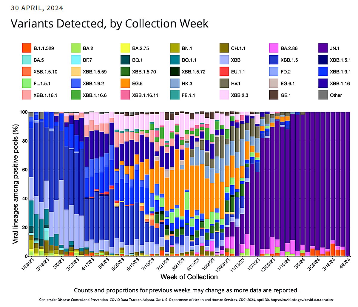 EN INGLÉS Actualización de varianteS de COVID-19 – 30 abril, 2024 Posted on mayo 1, 2024 por coronado https://www.idsociety.org/covid-19-real-time-learning-network/diagnostics/covid-19-variant-update/#/+/0/publishedDate_na_dt/desc/
