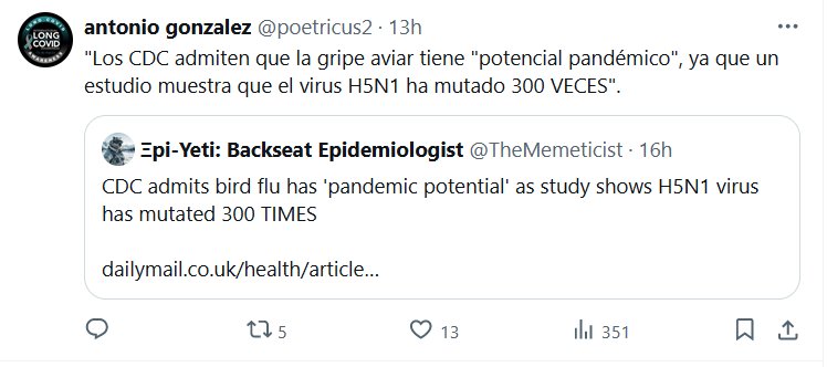 PARAPANDEMIA-SS «Los CDC admiten que la gripe aviar tiene «potencial pandémico», ya que un estudio muestra que el virus H5N1 ha mutado 300 VECES» Posted on mayo 7, 2024 por coronado