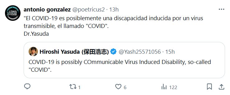 BLANCO SOBRE NEGRO «El COVID-19 es posiblemente una discapacidad inducida por un virus transmisible, el llamado «COVID». Dr.Yasuda Posted on mayo 9, 2024 por coronado