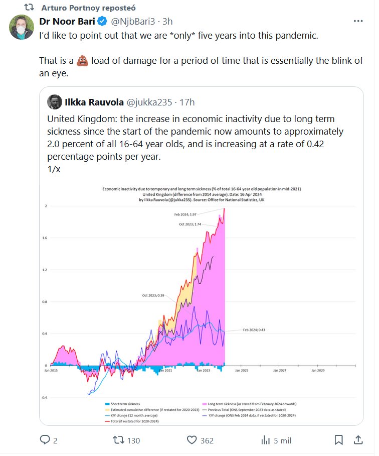 PANDEMIA LIBERADA=CAPITALISMO ESTÚPIDO (EN INGLÉS) Reino Unido: el aumento de la inactividad económica debido a enfermedades de larga duración desde el inicio de la pandemia asciende ahora a aproximadamente el 2,0 por ciento de todas las personas entre 16 y 64 años, y está aumentando a un ritmo de 0,42 puntos porcentuales por año
