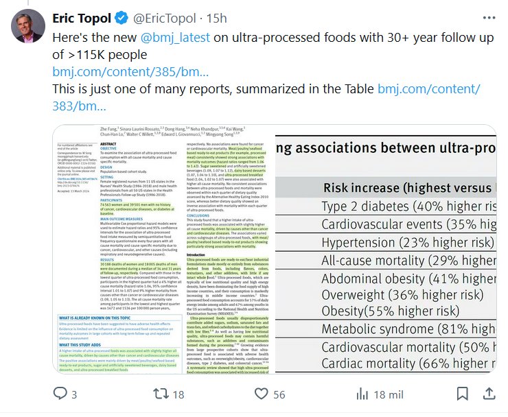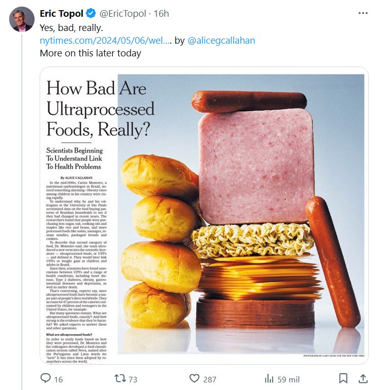 PESTE PREPANDÉMICA ¿QUÉ TAN MALOS SON LOS ALIMENTOS ULTRAPROCESADOS? (EN INGLÉS) Eric Topol @EricTopol · Sí, malos, de verdad.