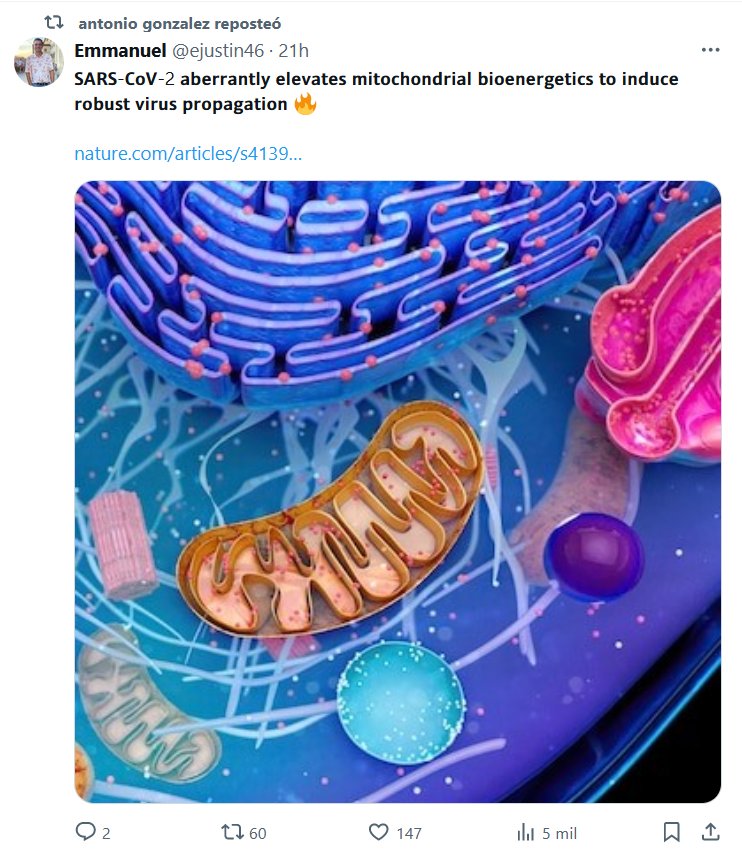 EN INGLÉS El SARS-CoV-2 eleva de forma aberrante la bioenergética mitocondrial para inducir una fuerte propagación del virus Posted on mayo 13, 2024 por coronado https://www.nature.com/articles/s41392-024-01836-x