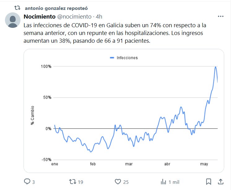 Las infecciones de COVID-19 en Galicia suben un 74% con respecto a la semana anterior, con un repunte en las hospitalizaciones. Los ingresos aumentan un 38%, pasando de 66 a 91 pacientes Posted on mayo 13, 2024 por coronado