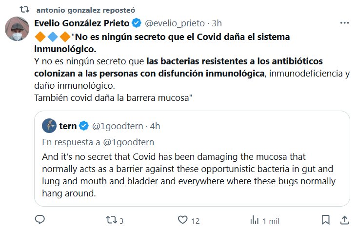 🔶🔷🔶»No es ningún secreto que el Covid daña el sistema inmunológico. Y no es ningún secreto que las bacterias resistentes a los antibióticos colonizan a las personas con disfunción inmunológica, inmunodeficiencia y daño inmunológico. También covid daña la barrera mucosa»