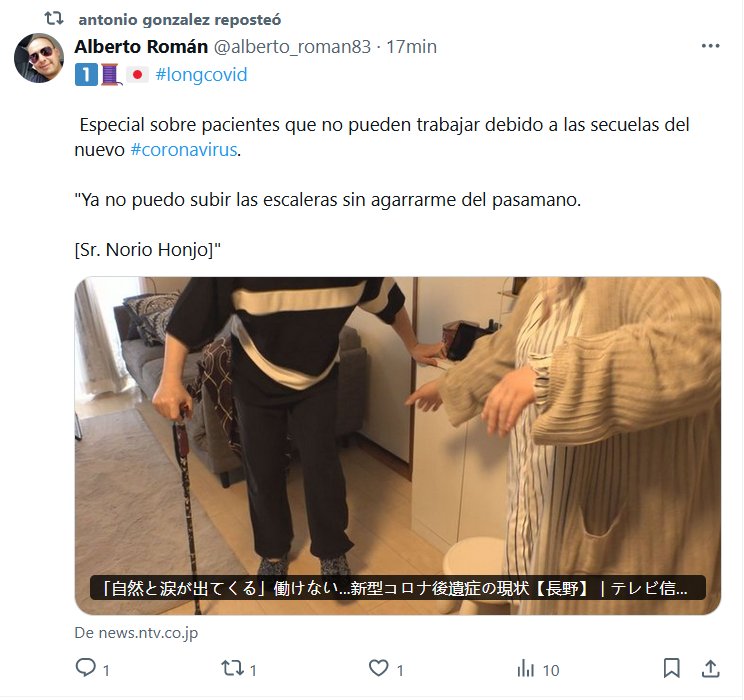 1️⃣🧵🇯🇵 #longcovid Especial sobre pacientes que no pueden trabajar debido a las secuelas del nuevo #coronavirus. «Ya no puedo subir las escaleras sin agarrarme del pasamano. [Sr. Norio Honjo]»