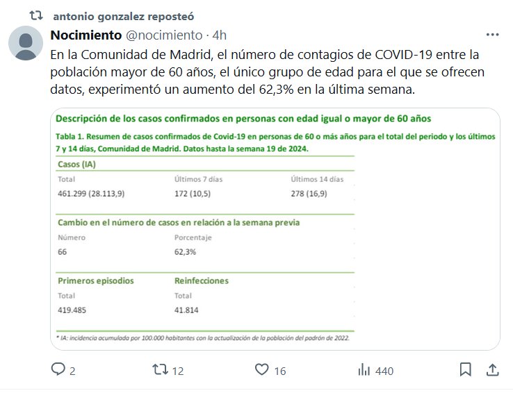 En la Comunidad de Madrid, el número de contagios de COVID-19 entre la población mayor de 60 años, el único grupo de edad para el que se ofrecen datos, experimentó un aumento del 62,3% en la última semana