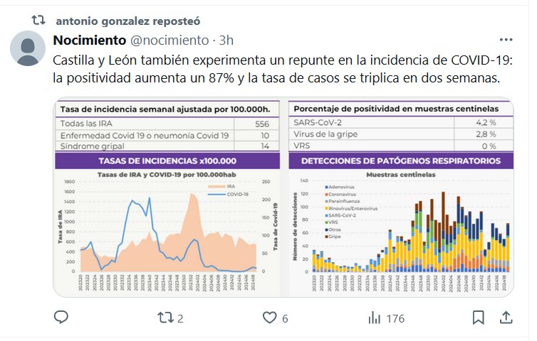 VUELVE A ESPAÑA TAMBIÉN Castilla y León también experimenta un repunte en la incidencia de COVID-19: la positividad aumenta un 87% y la tasa de casos se triplica en dos semanas Posted on mayo 15, 2024 por coronado