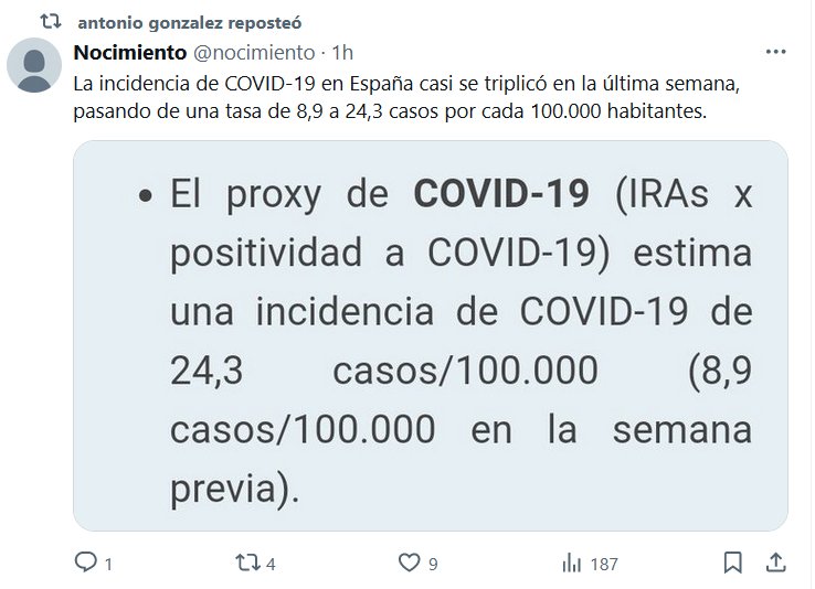 La incidencia de COVID-19 en España casi se triplicó en la última semana, pasando de una tasa de 8,9 a 24,3 casos por cada 100.000 habitantes Posted on mayo 17, 2024 por coronado