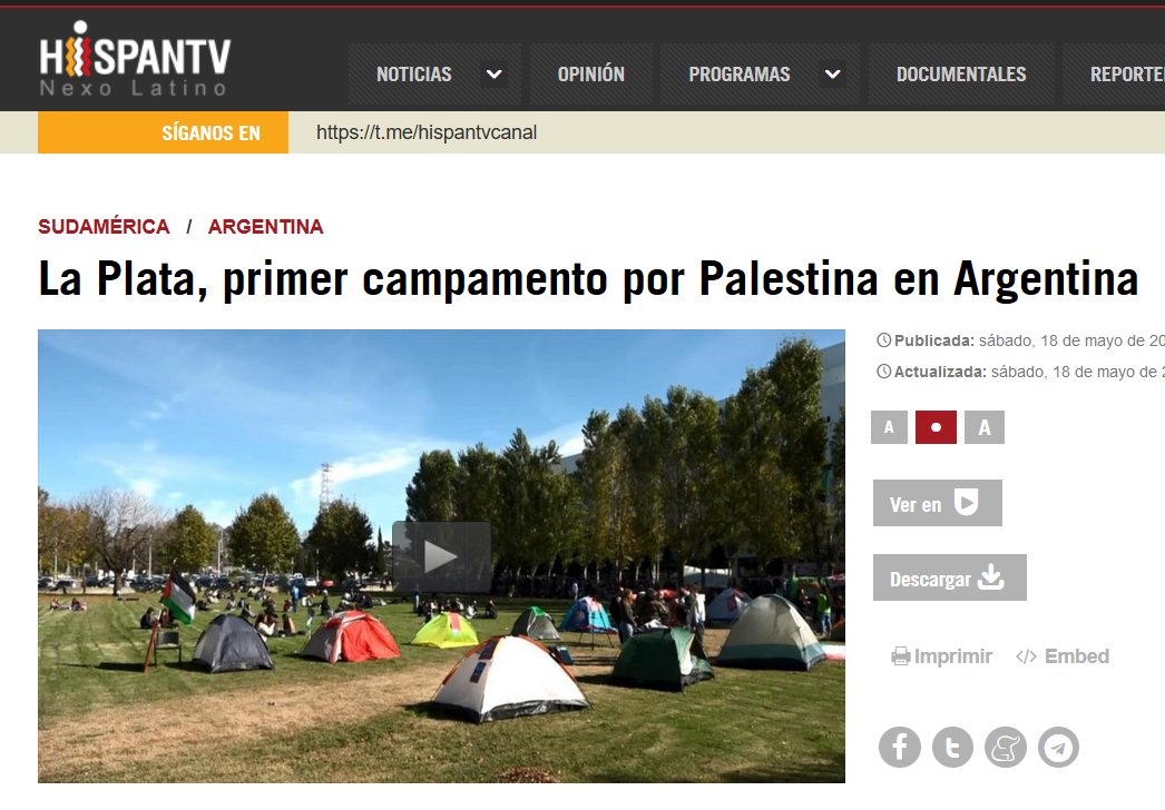 ES VIRAL Sudamérica / Argentina : La Plata, primer campamento por Palestina en Argentina Posted on mayo 18, 2024 por coronado NO AL NAZISMO ALEMÁN NI AL JUDÍO https://www.hispantv.com/noticias/argentina/594518/plata-estudiantes-palestina-israel