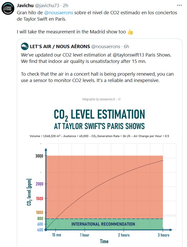 SUPERCONTAGIADORA COVID Gran hilo de @nousaerons sobre el nivel de CO2 estimado en los conciertos de Taylor Swift en París Posted on mayo 19, 2024 por coronado