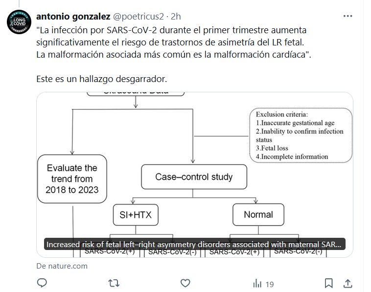 LESA HUMANIDAD «La infección por SARS-CoV-2 durante el primer trimestre aumenta significativamente el riesgo de trastornos de asimetría del LR fetal. La malformación asociada más común es la malformación cardíaca»