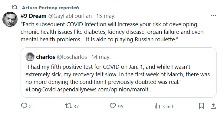 EN INGLÉS «Cada infección posterior por COVID aumentará el riesgo de desarrollar problemas de salud crónicos como diabetes, enfermedades renales, insuficiencia orgánica e incluso problemas de salud mental… Es como jugar a la ruleta rusa»