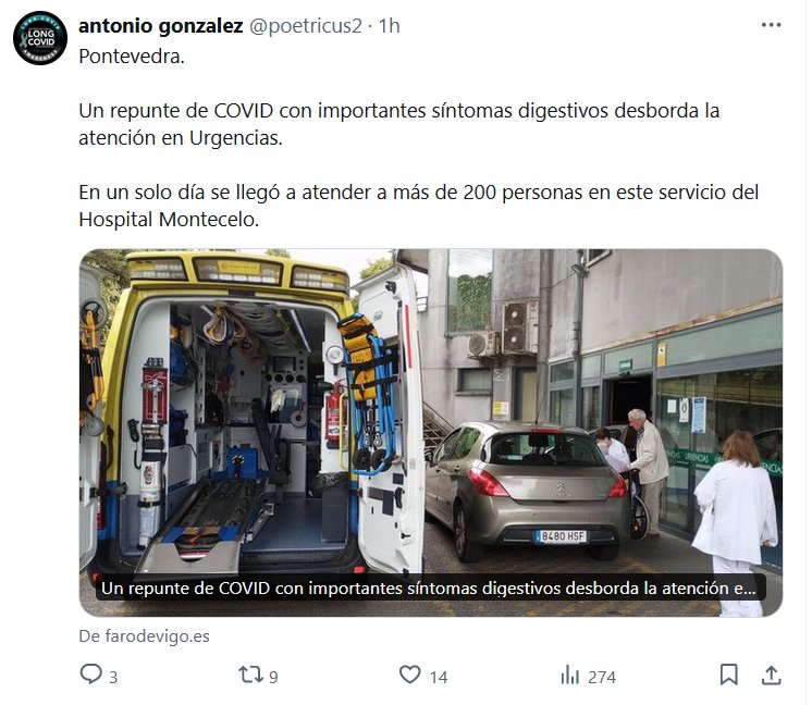 ESPAÑA Pontevedra. Un repunte de COVID con importantes síntomas digestivos desborda la atención en Urgencias. En un solo día se llegó a atender a más de 200 personas en este servicio del Hospital Montecelo.