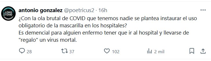 LA MUERTE DE LA SALUD PÚBLICA ¿Con la ola brutal de COVID que tenemos nadie se plantea instaurar el uso obligatorio de la mascarilla en los hospitales? Es demencial para alguien enfermo tener que ir al hospital y llevarse de «regalo» un virus mortal