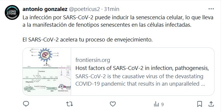 NO ES LEVE, ES LA MUERTE MISMA! La infección por SARS-CoV-2 puede inducir la senescencia celular, lo que lleva a la manifestación de fenotipos senescentes en las células infectadas. El SARS-CoV-2 acelera tu proceso de envejecimiento.