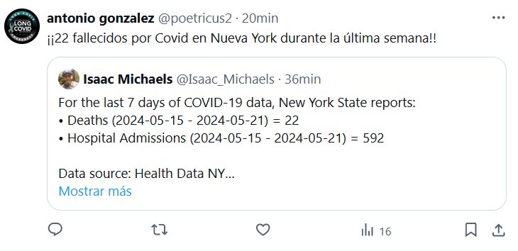 ¡¡22 fallecidos por Covid en Nueva York durante la última semana!! Posted on mayo 23, 2024 por coronado
