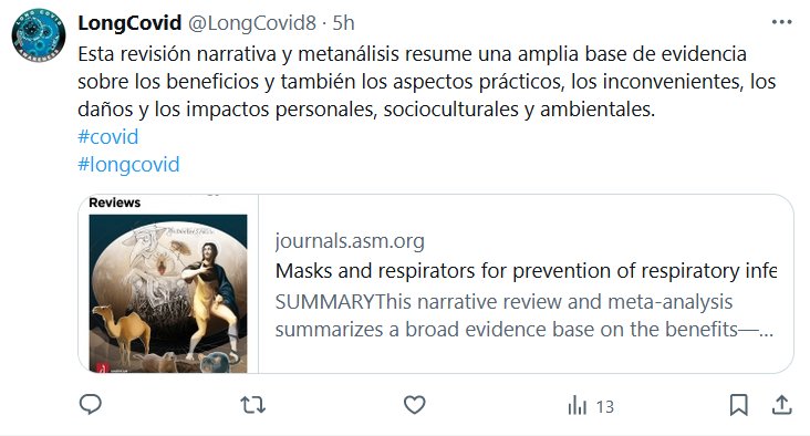LongCovid @LongCovid8 · Esta revisión narrativa y metanálisis resume una amplia base de evidencia sobre los beneficios y también los aspectos prácticos, los inconvenientes, los daños y los impactos personales, socioculturales y ambientales. #covid #longcovid