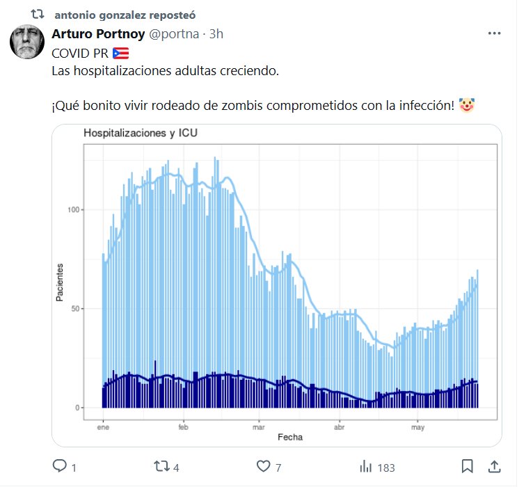 PUERTO RICO COVID PR 🇵🇷 Las hospitalizaciones adultas creciendo. ¡Qué bonito vivir rodeado de zombis comprometidos con la infección! 🤡