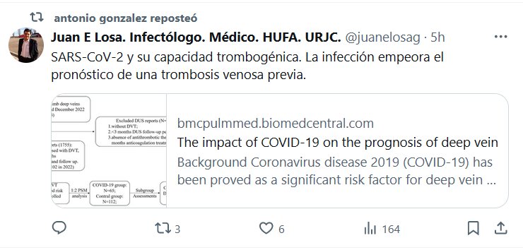 SARS-CoV-2 y su capacidad trombogénica. La infección empeora el pronóstico de una trombosis venosa previa Posted on mayo 25, 2024 por coronado