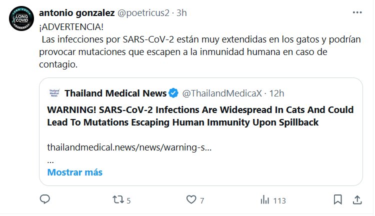 Noticias médicas de Tailandia @TailandiaMedicaX ¡ADVERTENCIA! Las infecciones por SARS-CoV-2 están muy extendidas en los gatos y podrían provocar mutaciones que escapen a la inmunidad humana en caso de contagio