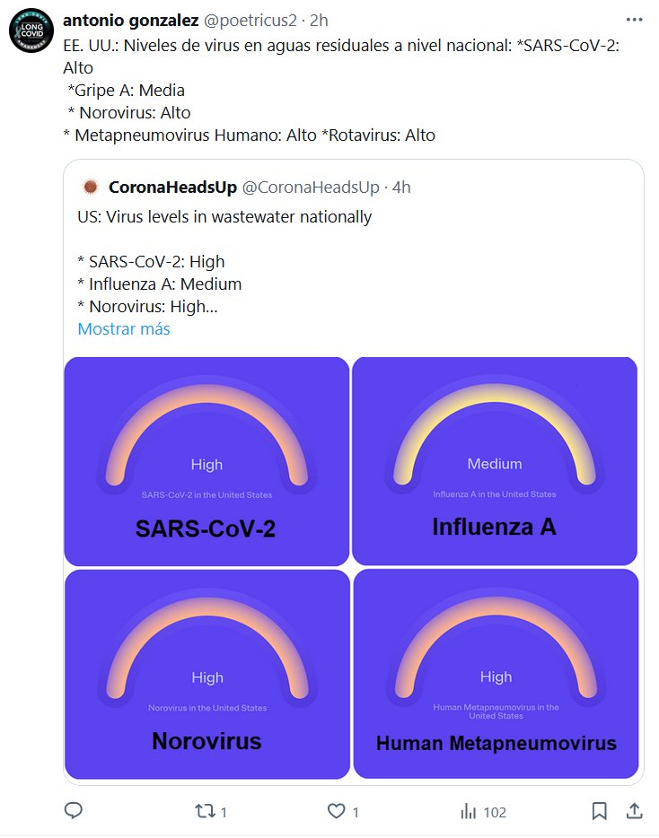 FIN DE PANDEMIA? EE. UU.: Niveles de virus en aguas residuales a nivel nacional: *SARS-CoV-2: Alto Posted on mayo 27, 2024 por coronado