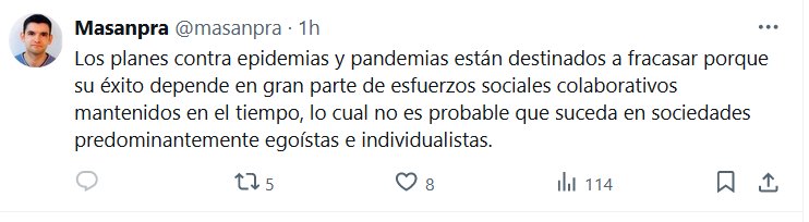 FUERTE Y CLARO Los planes contra epidemias y pandemias están destinados a fracasar porque su éxito depende en gran parte de esfuerzos sociales colaborativos mantenidos en el tiempo, lo cual no es probable que suceda en sociedades predominantemente egoístas e individualistas.