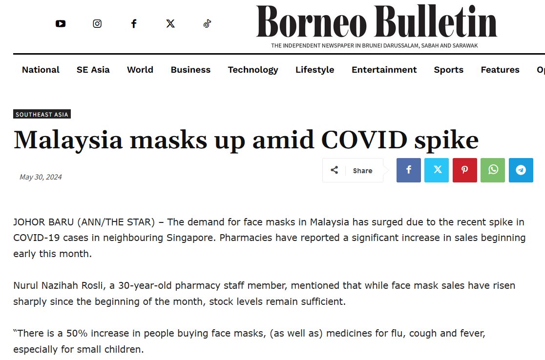 EN INGLÉS Malasia se enmascara en medio del aumento de COVID Posted on mayo 30, 2024 por coronado https://borneobulletin.com.bn/malaysia-masks-up-amid-covid-spike/